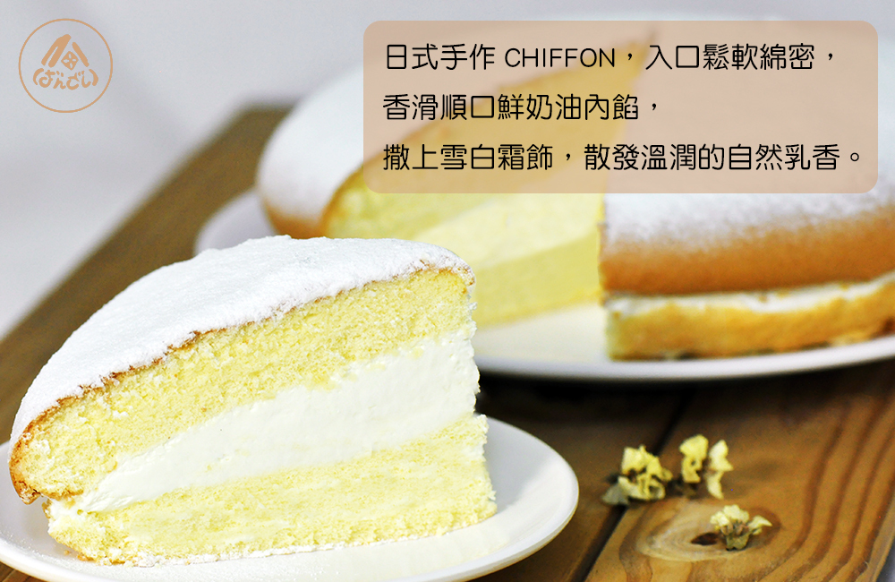 天然香草戚風的綿密搭配香滑順口的鮮奶油內餡,撒上的雪白霜飾,散發溫潤自然清爽的淡淡乳香,絕佳口感。