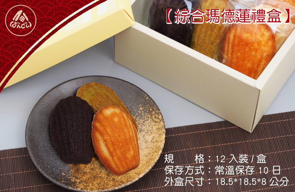 【綜合瑪德蓮禮盒】貝殼形狀的經典法式甜點,奶香醇厚,溫潤鬆軟,奶油與杏仁交織出的獨特迷人香氣。精選三款風味【經典原味】、【純粹濃巧】、【典雅茶香】,為您的每個時刻增添溫暖祝福的甜美.