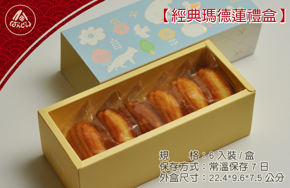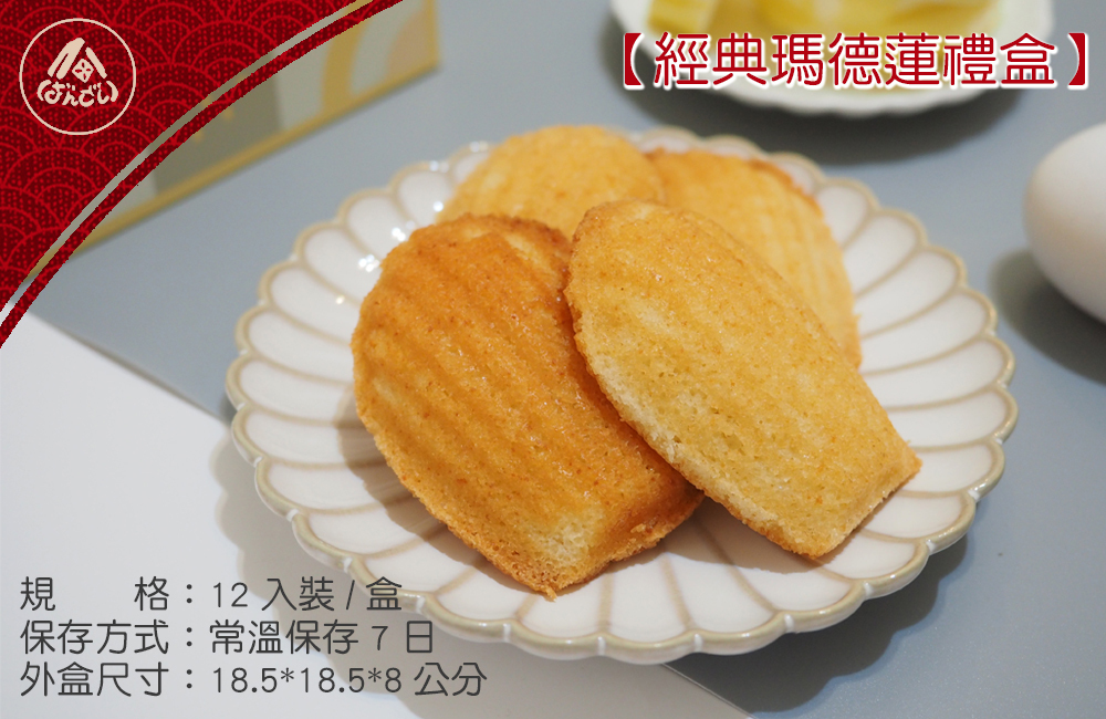 【經典瑪德蓮禮盒】貝殼形狀的經典法式甜點,奶香醇厚,溫潤鬆軟,奶油與杏仁交織出的獨特迷人香氣,為您每個時刻增添溫暖祝福的甜美。