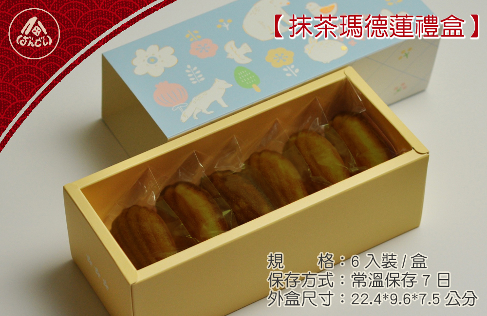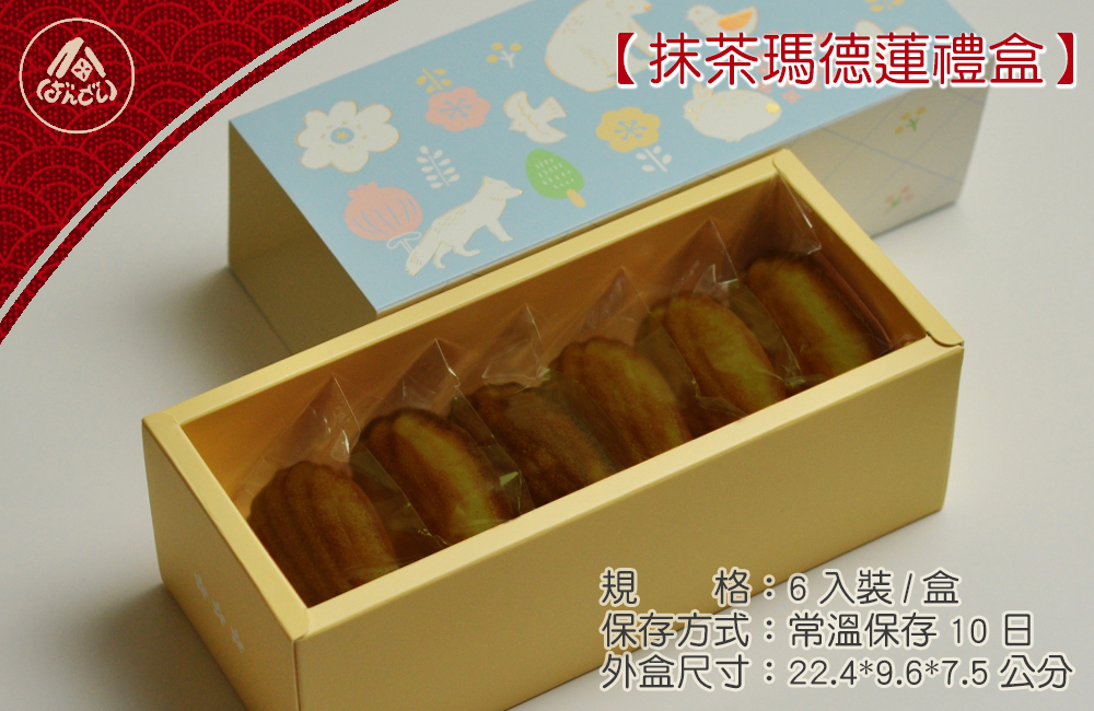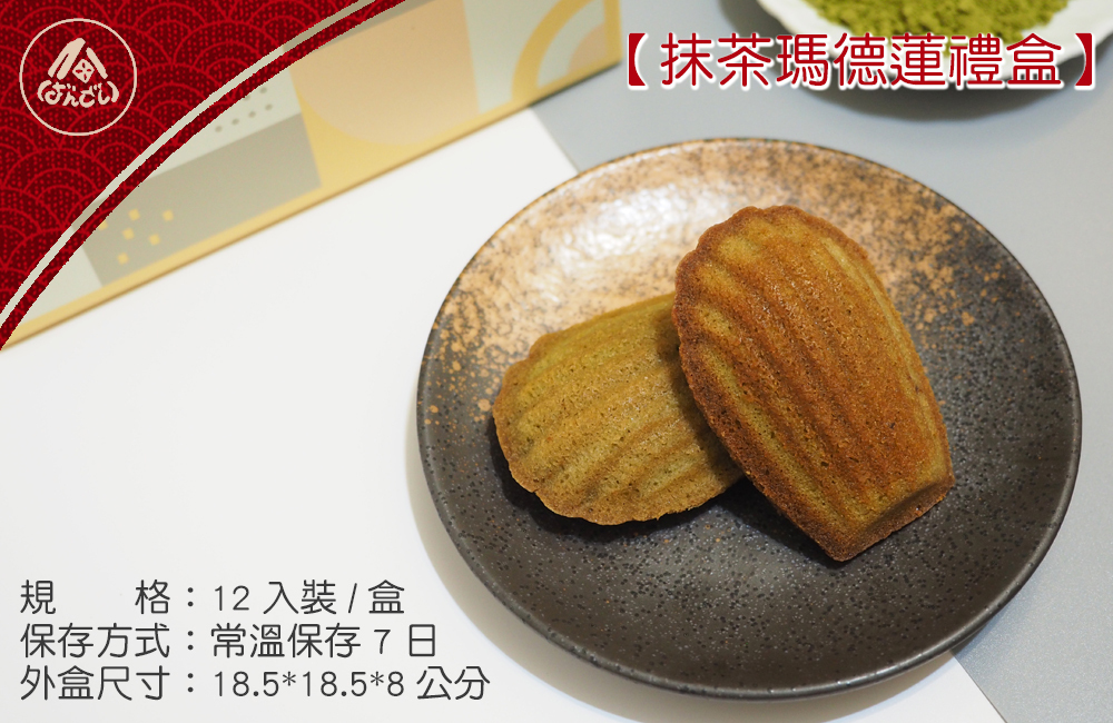 【抹茶瑪德蓮禮盒】貝殼形狀的經典法式甜點,茶香濃韻,香鬆柔軟,每一口都散發成熟的苦甜滋味,值得喜歡抹茶甜點的您品嚐。
