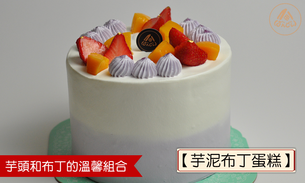 100%香純芋泥內餡,品嚐芋頭的細緻顆粒口感。蛋糕內餡採加高三層設計,二層綿密芋泥餡、一層布丁香緹鮮奶油,淡雅紫色日系裝飾,完美呈現味覺和視覺的豐郁享宴,滿足愛吃芋泥蛋糕的您。