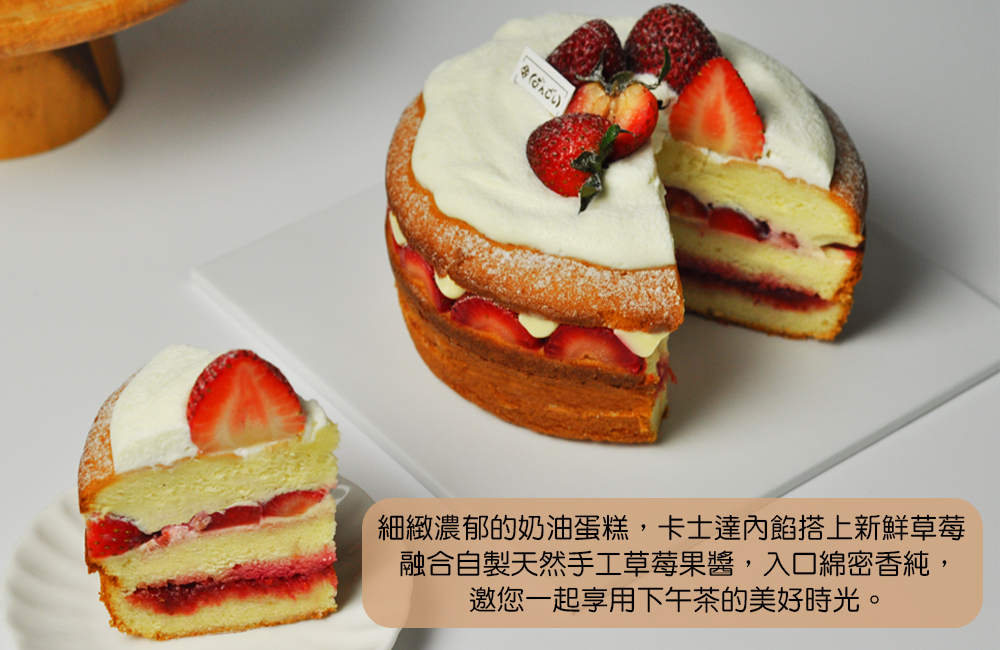 維多利亞女王時代,在兩片奶油磅蛋糕裡面夾滿鮮奶油和莓果醬,然後在蛋糕上面撒上糖,是女王特別喜歡在下午茶中享用的甜點。這種簡單而美味的甜點,漸成為在英國非常受歡迎的下午茶甜點,大家便將這款女王最愛的下午茶點心稱為維多利亞三明治或維多利亞蛋糕。灣仔湖除了保留維多利亞蛋糕應有的傳統元素,【奶油磅蛋糕】 、【香堤鮮奶油】、【手工草莓醬】之外,再加入卡士達內餡和新鮮草莓來提昇蛋糕的層次和風味。這款皇室傳統的經典茶點,絕對是您享用下午茶時光中,與茶點最自然的搭配。